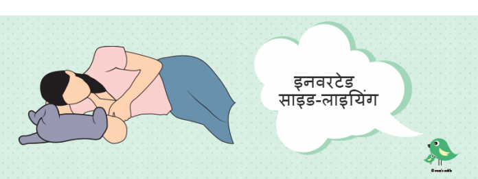 यह उपर दी गई दोनों पोज़िशन्स/स्थितियो के मुकाबले में आसान है और आरामदायक भी है। इस पोज़िशन में आपको अपनी साइड पर लेटना है और पीठ को सहारा दे कर तिरछा / साइड पर लेटना है।